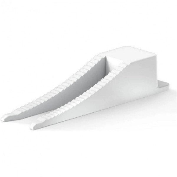 Предназначен для многократного использования, сделан из прочного пластика, он не деформируется при зажимании и надежно удерживает плитку в единой плоскости, обеспечивая отсутствие проседания во время высыхания плиточного клея. «Шаг зубьев» и форма клина позволяет работать с плиткой толщиной от 3 до 12 мм.