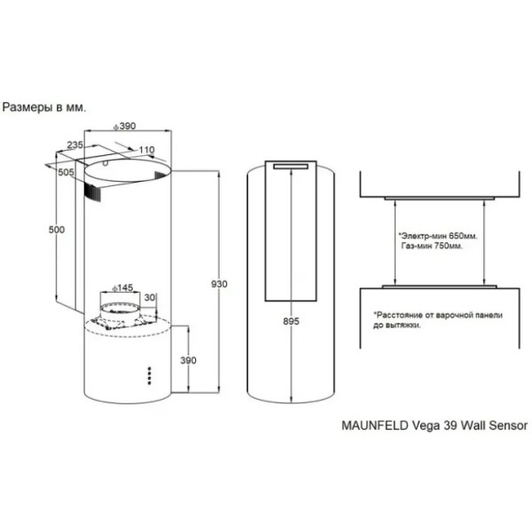 Вытяжка MAUNFELD Vega 39 Wall Sensor LED нержавеющая сталь |