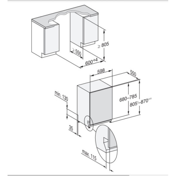 | Габариты ниши (ВхШхГ) | 805-870х600х550 мм |